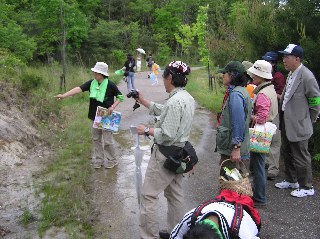 【左】ネイチャーエクスプロアリングのコースで三重支部事務局の木原さんが得意の地質を解説してくれました。