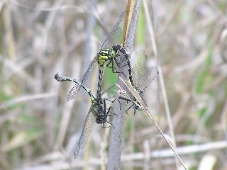 【左】フタスジサナエの三角関係です。