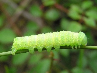 【左】ヒメキホソバの幼虫。