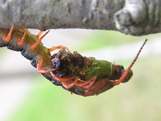 【右】トビズムカデが幼虫を食べていました。夜の活動が多いのですが。