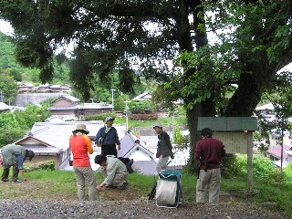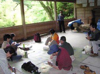 【中】みどりいっぱいの西高倉神社で昼食です。