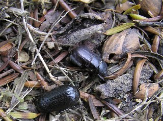 【中】シブナシガヤの実が落ちていたところにいたクロコガネ。