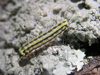 【右】タケカレハの幼虫です。