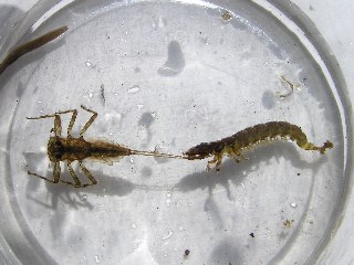 【左】ヒラタカゲロウ(左)トビケラの仲間(右)