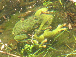 【右】モリアオガエルのラブラブ。