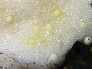 【左】モリアオガエルの卵。