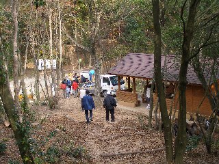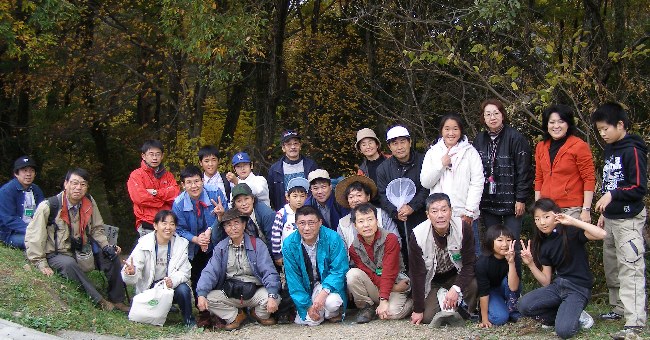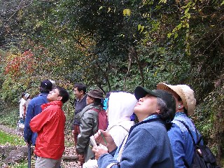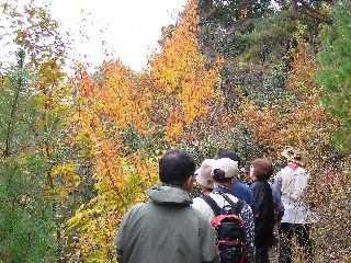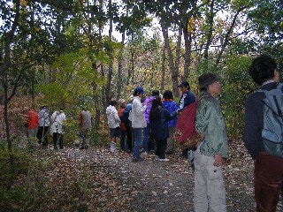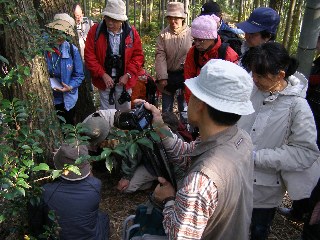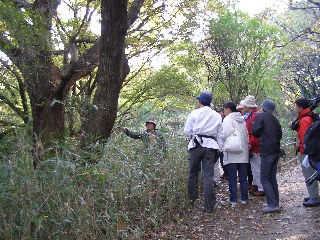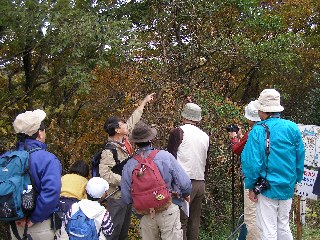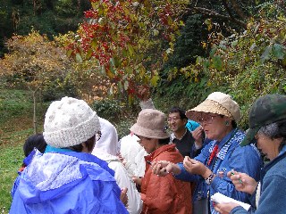 【左】「やすらぎの森」の実どころ説明を受けています。
