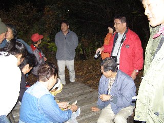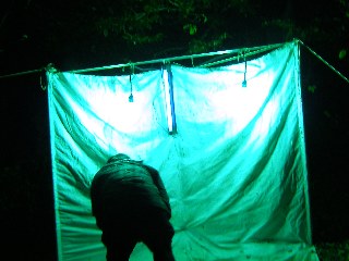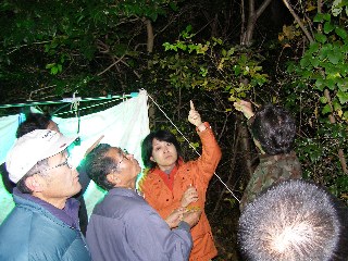 【左】水銀灯に来た昆虫を観察している。
