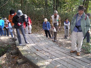 【左】森作りの会が製作した木道です。