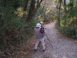 【右】感じのいい森の小道の写真を撮っています。
