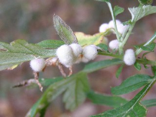 【左】ヨモギシロケフシタマバエが作った虫こぶ。