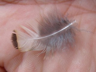 【右】アオバズクの裏雨覆羽の一部でしょうか。
