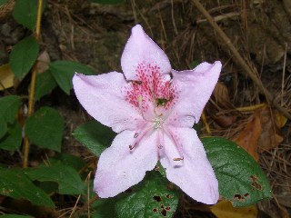 【左】モチツツジの狂い咲き。