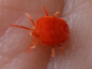 【左】大きな赤いダニ。アカケダニでしょうか。