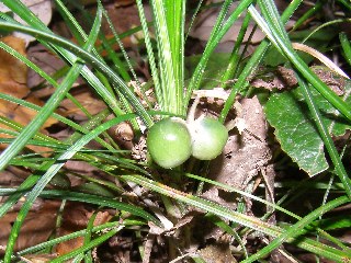 【中】ジャノヒゲ。果実がやがて緑から紫色になります。