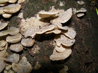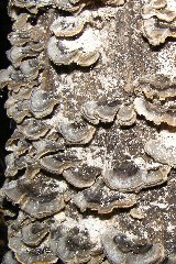 【左】びっしり生えたカワラタケ。