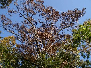 【中】カシノナガキクイムシの被害にあったコナラ。