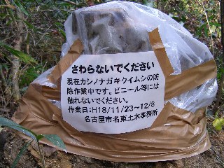 【右】被害木をビニールで密閉して処理。