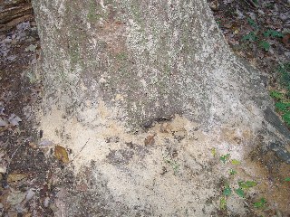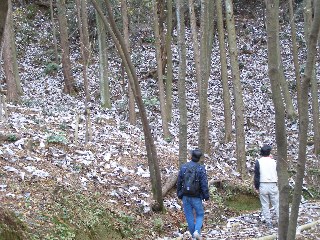 【中】兒の森にもカシノナガキクイムシの被害を受けた木がたくさんありました。