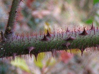 【右】たくさんトゲが出たエビガライチゴの樹です。