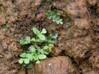 【右】ショウジョウバカマの葉先から不定芽が出て子が増えていました。