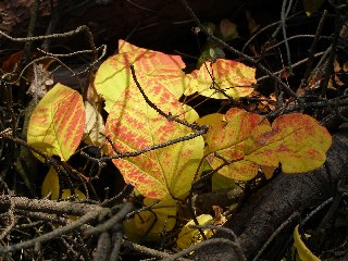 【左】ヤマノイモ(黄)、ツタ(赤)