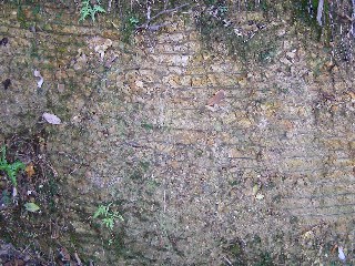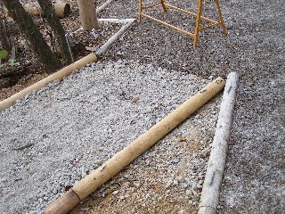 【左】砂利の上に木砕を接着剤で固めた物を敷いていた。