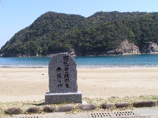 浜に、戦争を戒める100匹目のサルの碑があった。