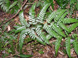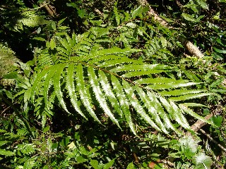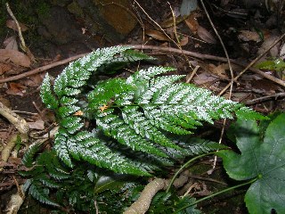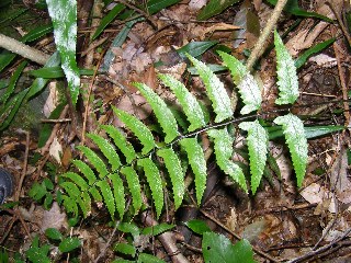イワガネソウ(ホウライシダ科)、スジヒトツバ(スジヒトツバ科)、クリハラン(ウラボシ科)栗の葉のよう。ヘラシダ(メシダ科)ノキシノブの大きいの。サジラン(ウラボシ科)ノキシノブの先のとがったの。コモチシダ(シシガシラ科)、ヒノキシダ(チャセンシダ科)ヒノキの葉のよう。リュウビンタイ(リュウビンタイ科)先のとがった。