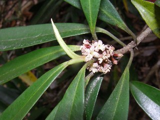 シロダモ(クスノキ科)ホソバタブに似る。イズセンリョウ、フサザキセンリョウ、ダンコウバイ、カギカズラ、ハドノキ(イラクサ科)