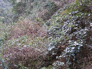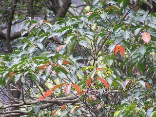 トキワガキ、柿の仲間で冬に葉が落ちない南方系。オオバヤドリギ、実は小さなキゥイフルーツ。モロコシソウ(サクラソウ科)オカトラノオ属、黄色の花、南方系。ミサオノキ(アカネ科)反り返ったシキミのような花。カンザブロウノキ(ハイノキ科)。ウドカズラ(ブドウ科)ウドの葉のように2〜4の羽状複葉、南方系。タイミンタチバナ(ヤブコウジ科)。キミズ(イラクサ科)。アリドオシ(アカネ科)一両とも、千両万両アリドオシ(縁起物)。オオアリドオシ(アカネ科)前立腺の薬。バリバリノキ(クスノキ科)ハマビワ属、燃やすとバリバリ線香のにおい。コバノタツナミ(シソ科)。シマサクラガンピ(ジンチョウゲ科)大分以南の東側〜屋久島、南方系。ヒメイタビ(クワ科)葉脈の広がりが大きい。カギカズラ(アカネ科)高血圧改善によい、4本の鉤が出る、絶滅危惧種。ボロボロノキ(ボロボロノキ科)枝が折れやすい、幌幌の木、南方系。コバンモチ(ホルトノキ科)輪状に葉が着く、南方系。ハナガカシ(葉長カシ)(ブナ科)。ミヤマトベラ(マメ科)葉3枚種はマメ科らしくない。オオルリソウ(ムラサキ科)。ハマクサギ(クマツヅラ科)。シダ マツザカシダ(イノモトソウ科)イノモトソウに似る真ん中ふっくら。ナチシダ(イノモトソウ科)五角形に見える。オオイワヒトデ(ウラボシ科)フェニックスに似る。