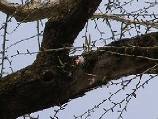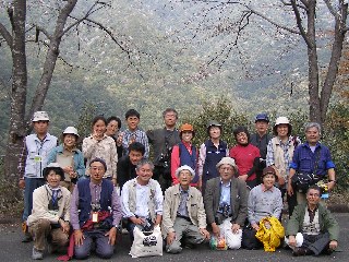学校裏か何かの路地をひょいひょいと入っていったところに、なんとまあ大きな銀杏があった。村瀬さんが双眼鏡で幹を見て蘭が咲いてる!と叫ぶ。どれどれ、と一斉に視線が集まるものの、何しろ大きいイチョウだものだから、そうそう!という人と、どこどこという人といろいろ。しばらくするとみんな、「そうそう、あったあった、きれい!」と、同意。セッコクのピンクの可憐な花でした。