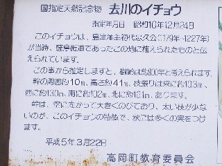【左】綾渓谷とつり橋。 【右】去川のオオイチョウ