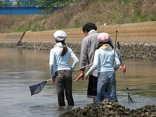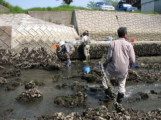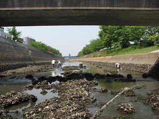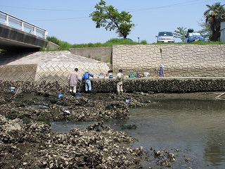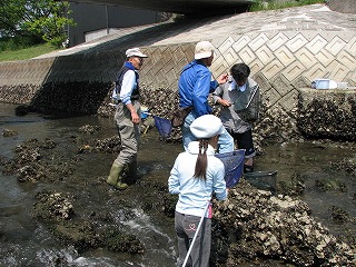 をしました。捨て石の上以外はヘドロの底なし沼なので、皆さん、注意しながら頑張りました。