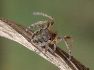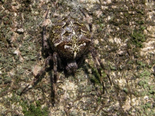【左】クモの観察をしています。 【右】ジョロウグモの中に他のクモがいました。