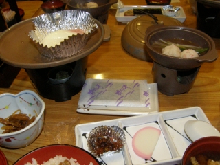 【右】固形燃料使用による玉子焼きとおでんの調理。?