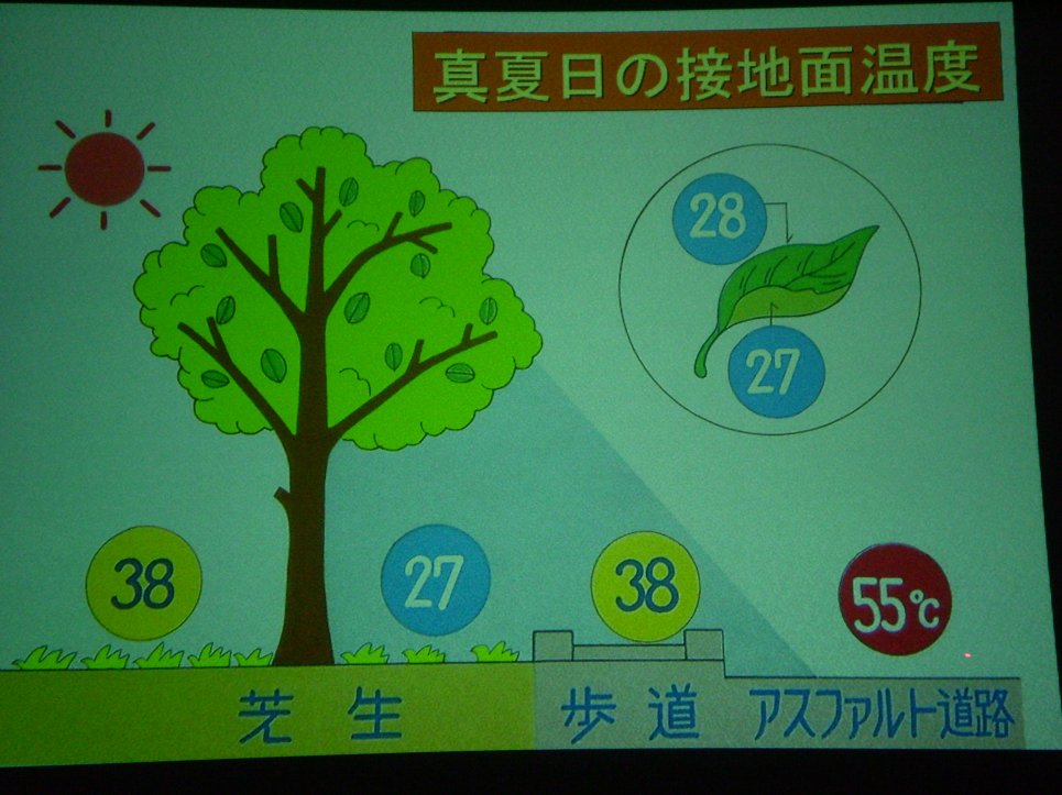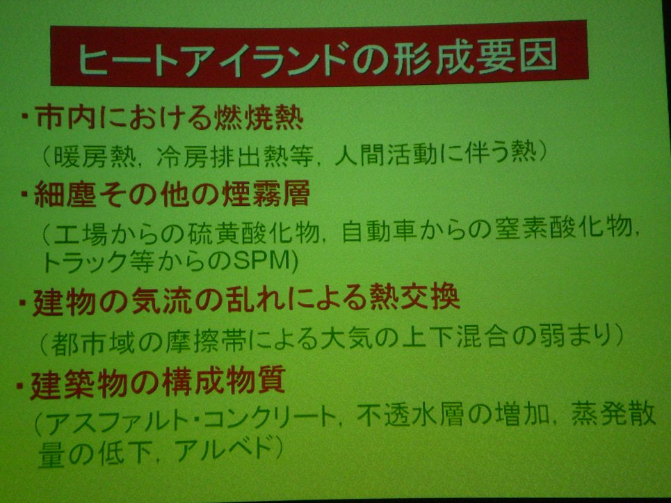 ・ 夏に屋内をガンガン冷すのではなく家の前の散水など現在の生活の中にも、すごく改良の余地ありと結ばれ、何もしないと取り返しのつかないことになりますよと警鐘を鳴らされました。