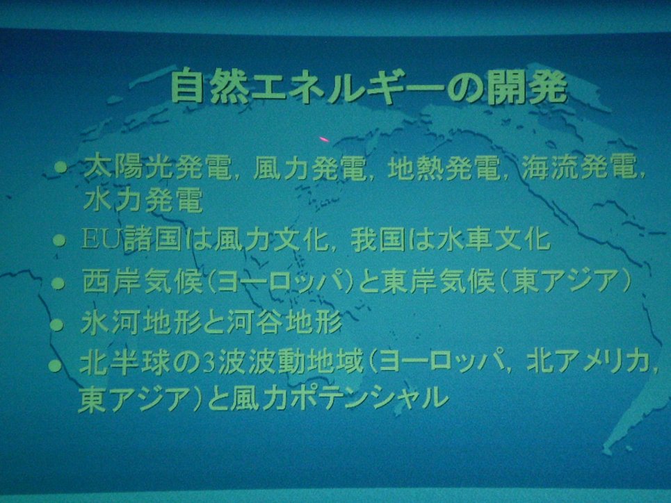 ・ 先ず、化石燃料からのエネルギーの直接・間接を問わず、消費節減を図り、自然エネルギーの開発、即ち太陽光、風力及び地熱などの発電の利用促進を図ることです。