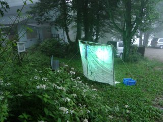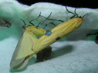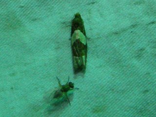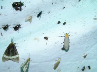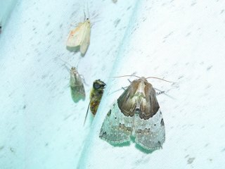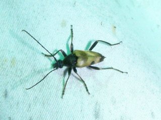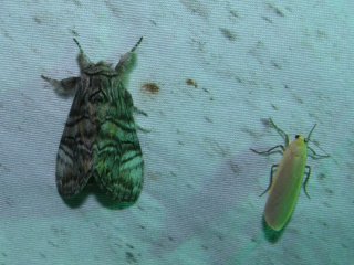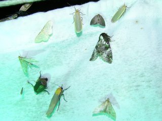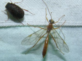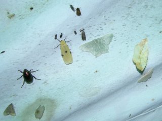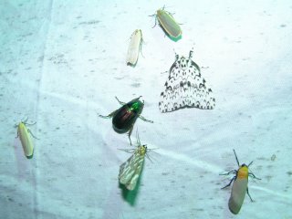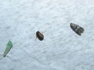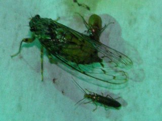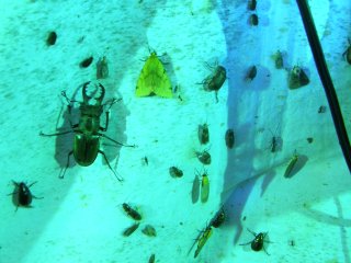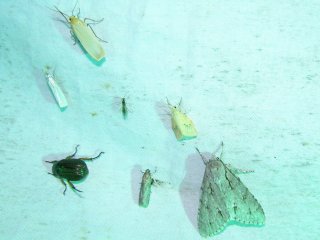 【右】エゾハルゼミ(?)、コガネムシ類とマダラカミキリモドキ(?)