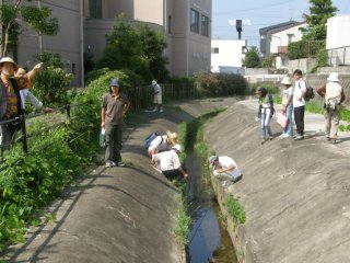 昨年実施されたオオキンケイギクの調査で調査区域の空白部分が生じたことを反省に、現地確認研修を行ったところ多数の会員の皆さんが集まりました。簡単に調査の方法、および、調査報告方法を確認してから実物確認をしました。実物は、集合場所の直ぐ北の水路にたくさんのスクミリンゴガイの成体と卵塊が見られるところから水路に移動して行いました。実物確認確認をした後、調査区域の分担をして解散しました。(記・降幡)