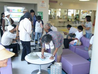 【右】それぞれ市町ごとの調査地の分担を話し合っています。