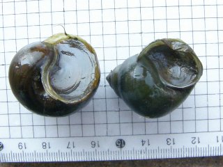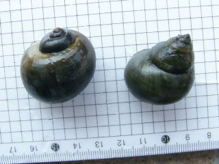 【左】スクミリンゴガイ(左)、タニシ(右)