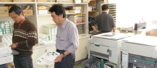 【左】原稿がまとまり、印刷準備です。 【右】手際よく印刷しました。