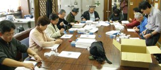 今まで年報作成の様子はWebに掲載していませんでしたが、今年は載せることにしました。年々、年を追うごとに会員の皆さんから観察会記録をこまめに出していただいています。1年のまとめである「年報」は、観察記録の集大成であります。昨年まではすべての行事記録を「年報」に載せました。その関係から完成するのに朝早くから始めて夕方、暗くなるまでかかりました。出来れば全部の行事を印刷できればよろしいですが、今年から「年報」作成担当者の提案で3分の1になるように各市町で選抜していただくようにしました。その結果、ほぼお昼までに完成することが出来ました。年報作成に当たり、一番大変なのは、事前に原稿作成することですが、印刷当日、たくさんの会員の方に集まっていただき、皆さんに手際よく作業を進めていただき完成することが出来ました。観察会の実施⇒観察記録のまとめ(Web原稿)⇒年報作成 最後のまとめまですべて円滑に進みました。