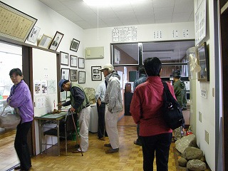 【右】管理人兼説明者からお話を聞く