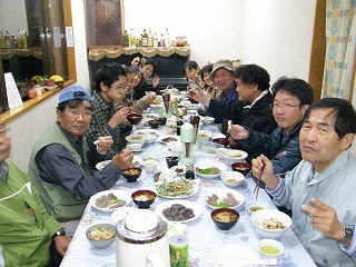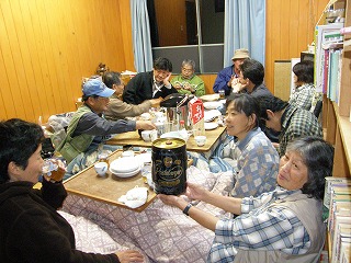 夕方からできあがってたので、酔いが回って早く寝る人続出。10時にはみんな就寝。