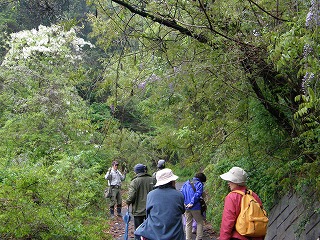 【左】紫と白いフジの中、化石路頭地へ向かう