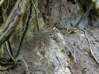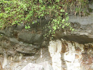 【右】崖の上にある化石の露頭