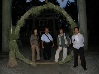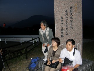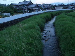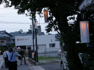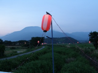 金山を17時55分発の帰宅ラツシューの快速列車に乗り近江長岡に向かう。列車が大垣駅を過ぎローカル色豊かな里山と田んぼが広がる風景になり、ホタルが見れるぞと言う気持ちになり車窓の景色を見ながら童心に帰った。18時58分列車は定刻どうり無人駅の長岡に着く、キップを回収ボックスに入れ夕闇には少し早い駅前の路地に向かう。迎えてくれたのは地元の子供から大人がそれぞれに故郷の誇りホタルへの思いを絵に描いた掛行灯であつた。町民のホタルに対する想いを描いたぼんぼりに導かれて、路地を進むと天野川の下流に着く。程なく歩くと町の社である川の脇に鎮座する長岡神社があり参拝する。この社には今回のホタル祭りに(6月5日〜14日)に合わせて神事が行われたらしく、萱で作られたチワワ?の輪があり、その横には樹齢800年、滋賀県天然記念物のイチョウの大木が四方を見渡していた。社を後に夕闇が迫る川沿いの路をぼんぼりに導かれ歩み、ホタル観賞地のシンボル特別天然記念物の謂れと発祥を記したレリーフの石碑の前に座り込み、軽い軽食と歓談をしながら暗闇になるまで時を過ごしホタル出現を待つ。少し風も出てきてホタルが飛び交う気配はないものの川辺の草むらに1つ、2つとホタルの明かりを観賞出来た。どうやらピークは過ぎたらしく数は多く出現しなかったが童心帰りそれなりに達成感を味わう事ができた。このまま自然破壊が進まず、伊吹山の麓の里山に自然豊かな環境が育つことを祈念しながら、帰路に着く。