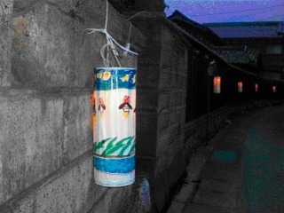 【左】名護か駅前は静でした。 【右】ぼんぼりがホタル発生地まで続きます。
